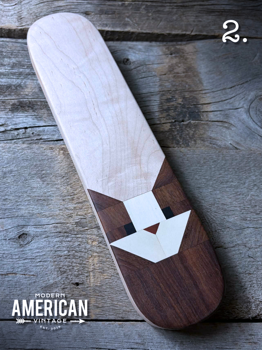 - Pao Rosa, African Blackwood, Pink Ivory, Holly and Quartersawn White Oak