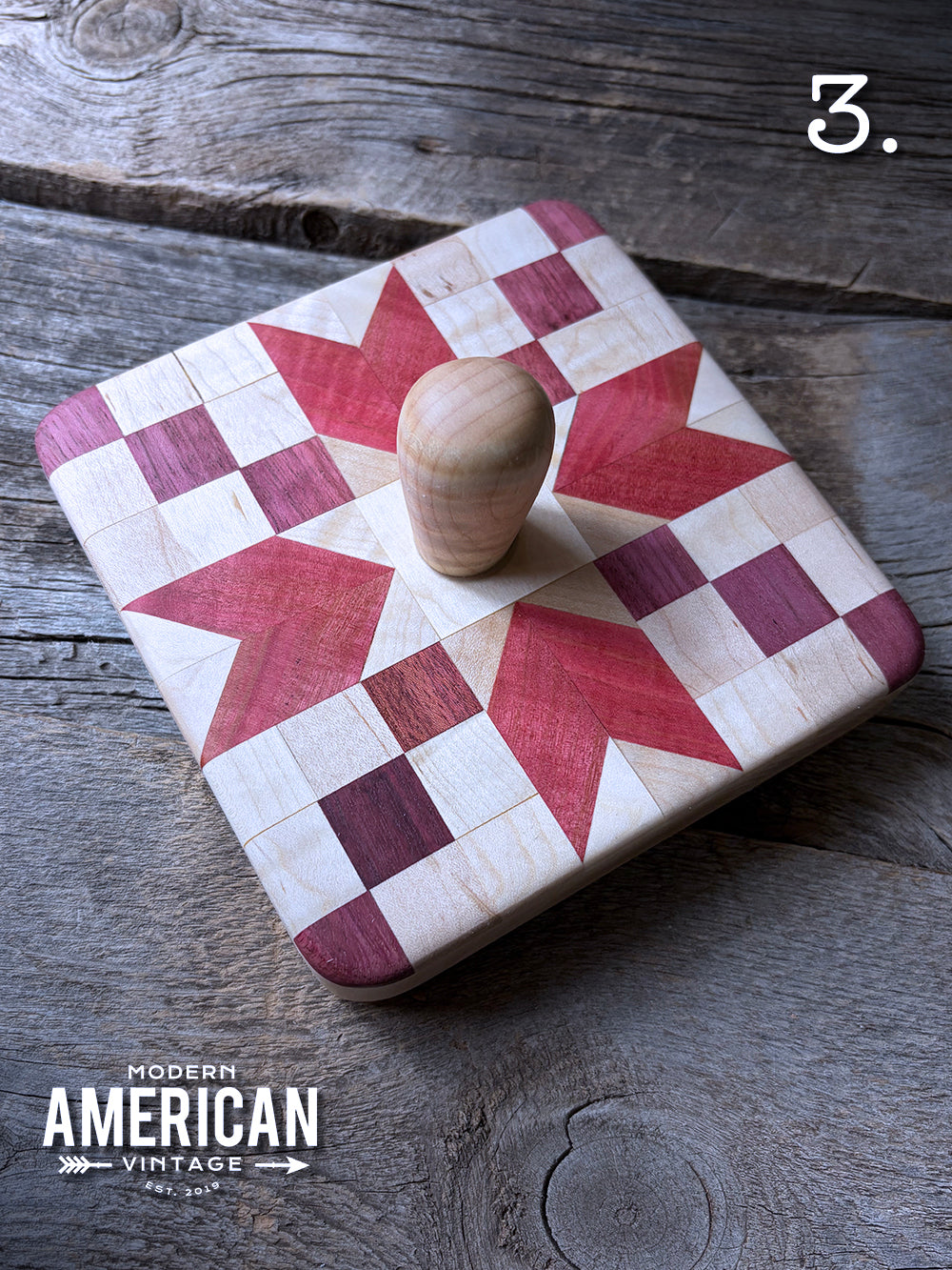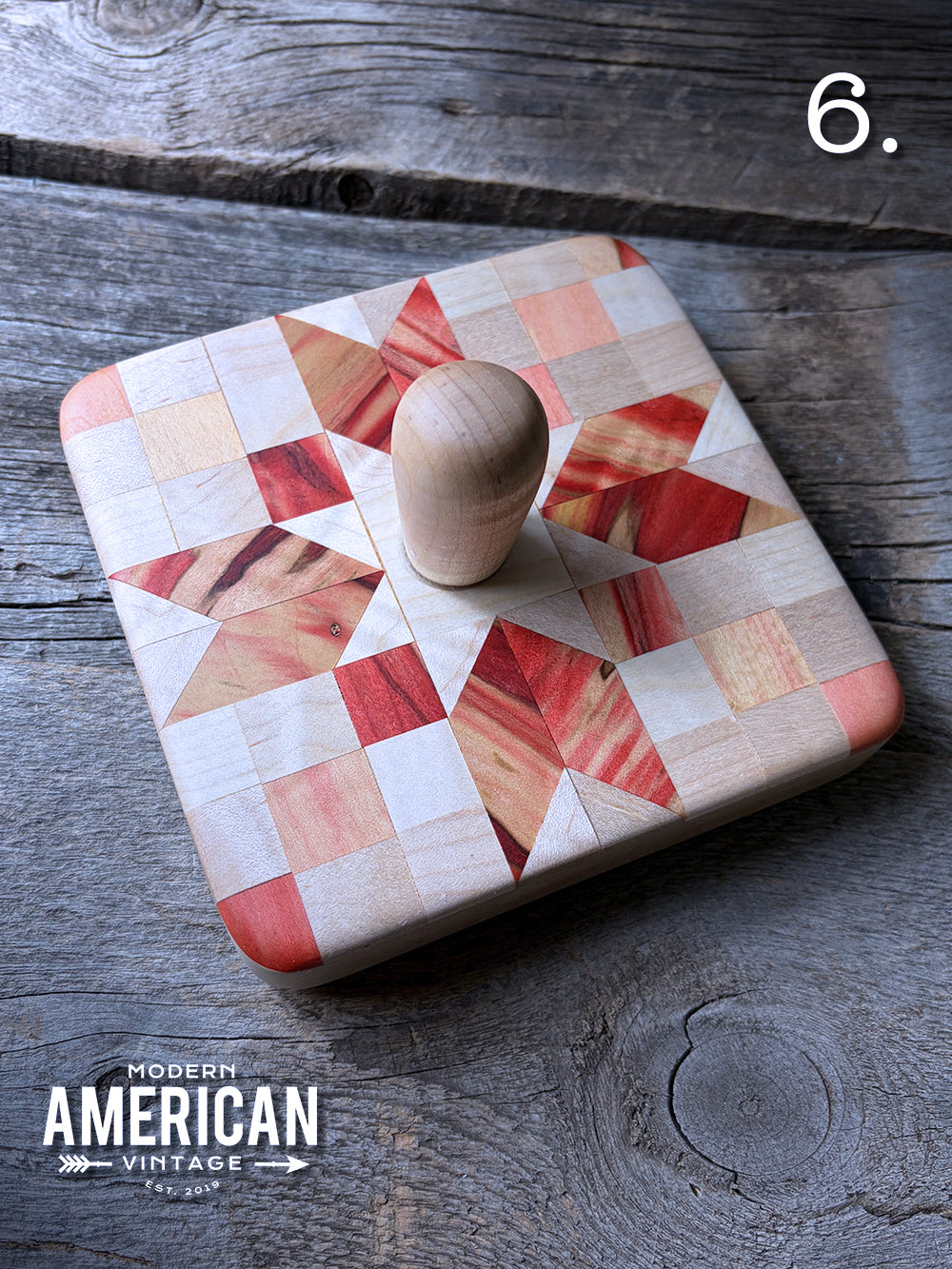 Each charm square clapper is approximately 6x6" and the wood combos are as follows: