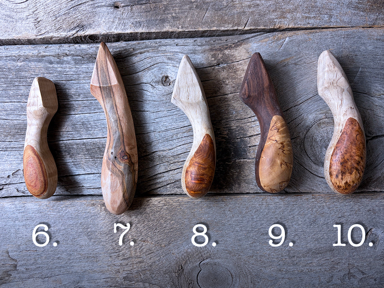 Each tool is hand crafted, hand sanded up to a fine finish, and coated with a blend of beeswax and orange oil to protect and bring out the NATURAL beauty of the wood.