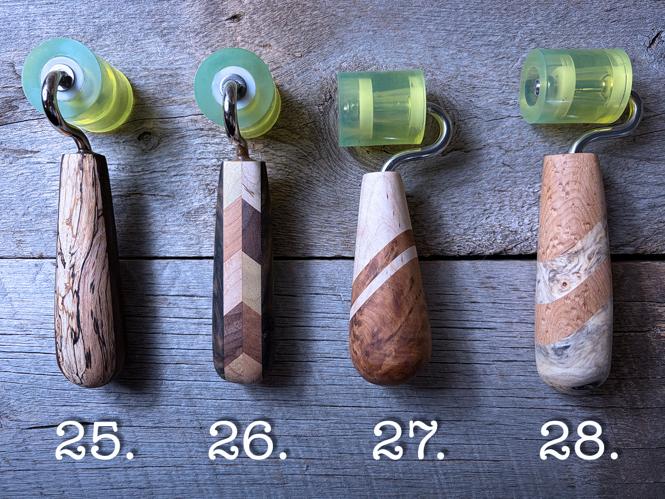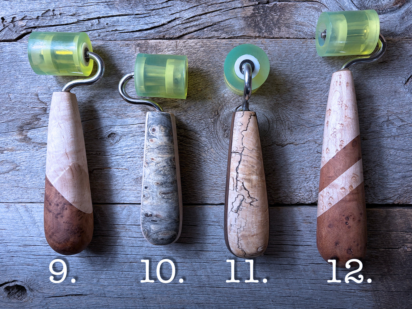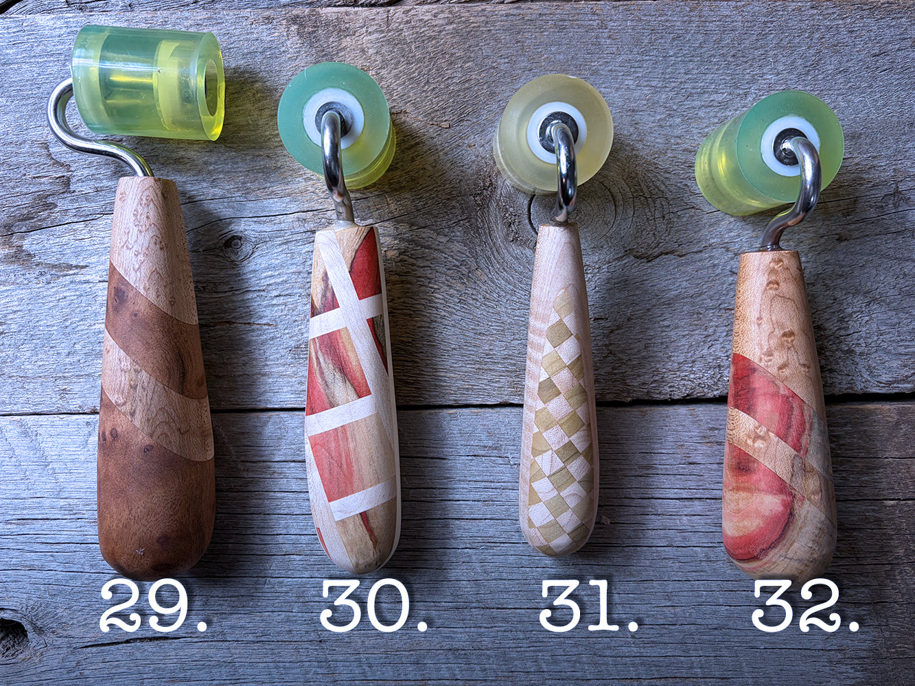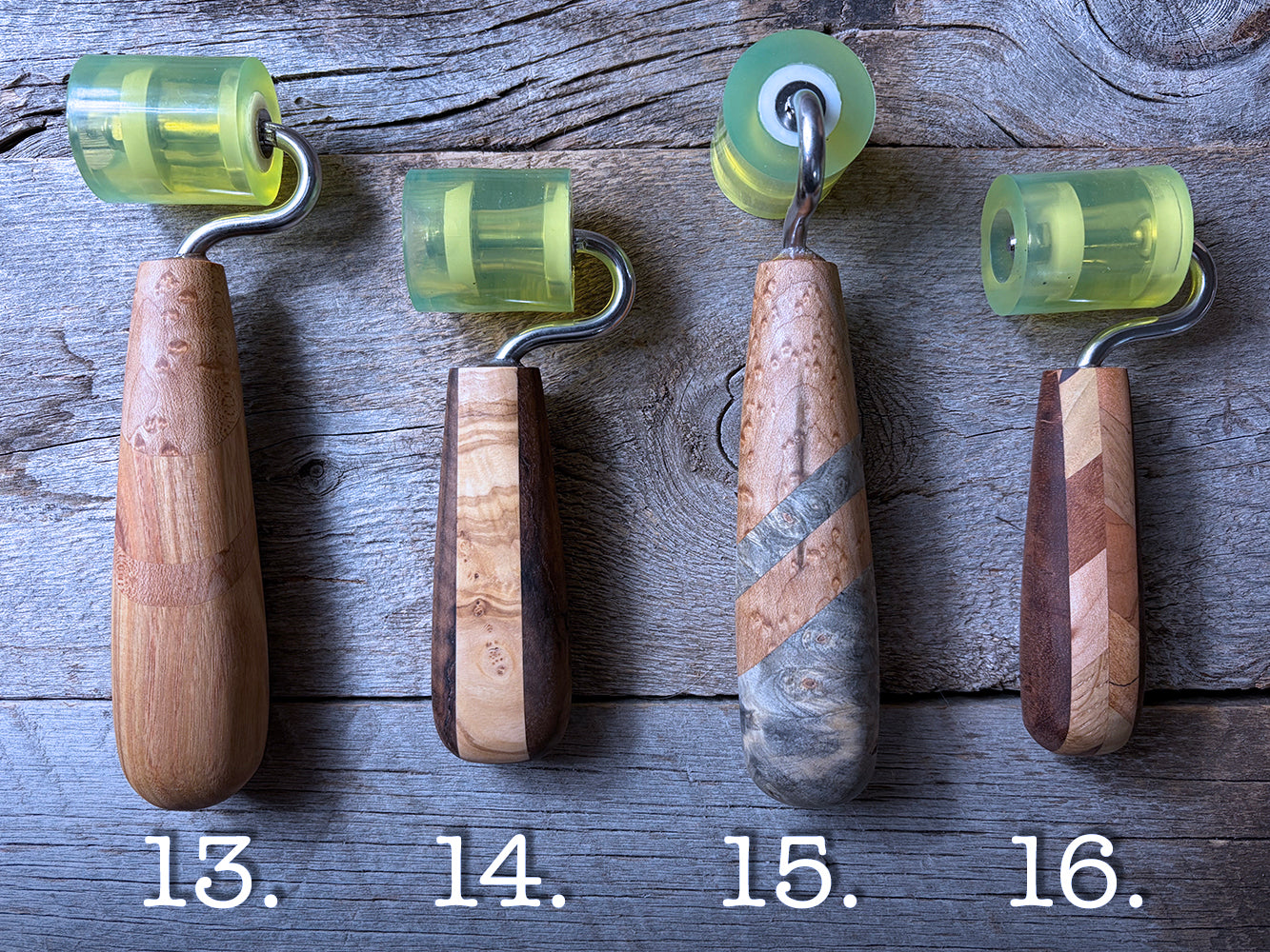 Each tool is hand crafted, hand sanded up to a fine finish, and coated with a blend of beeswax and orange oil to protect and bring out the NATURAL beauty of the wood.