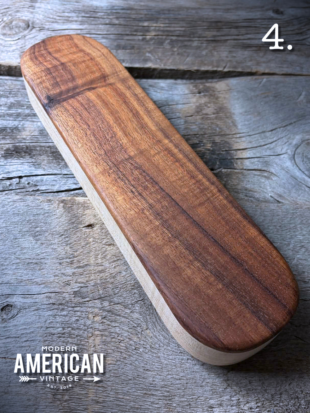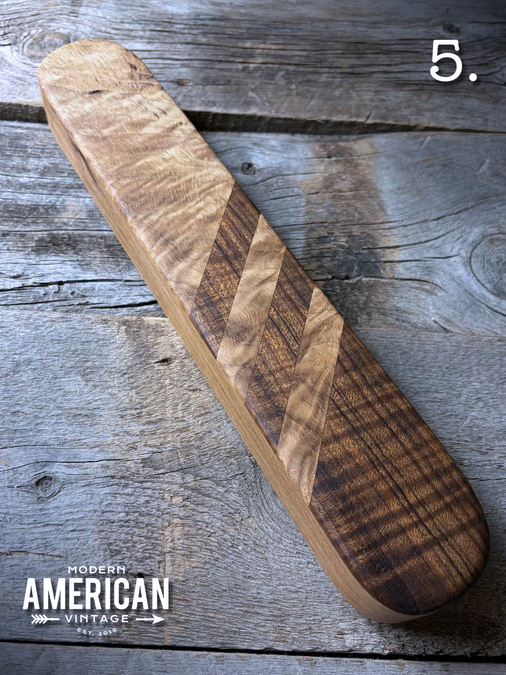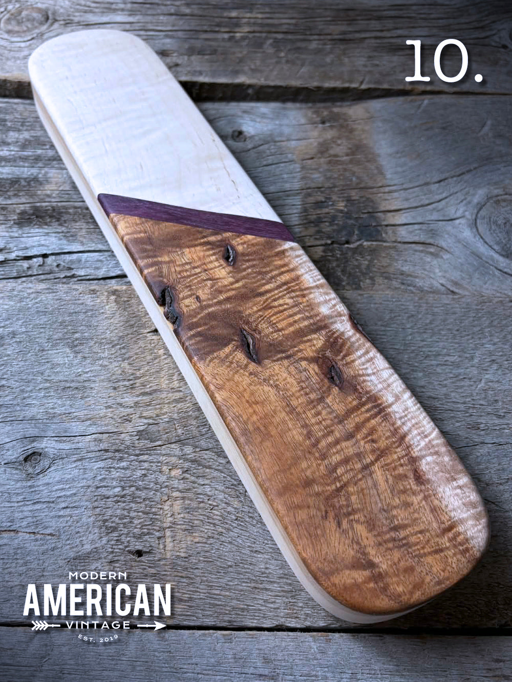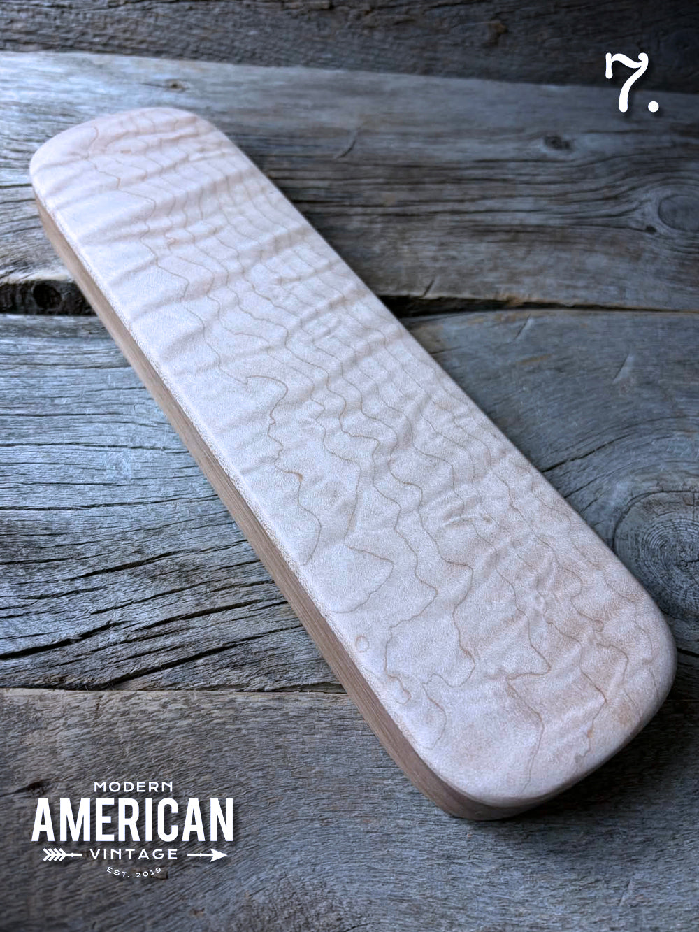- Padauk, Poplar and Curly Maple top on Curly Maple base - 11x3.5"