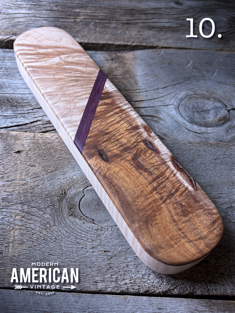 - Quilted Maple top on Walnut base - 10.5x2.75"