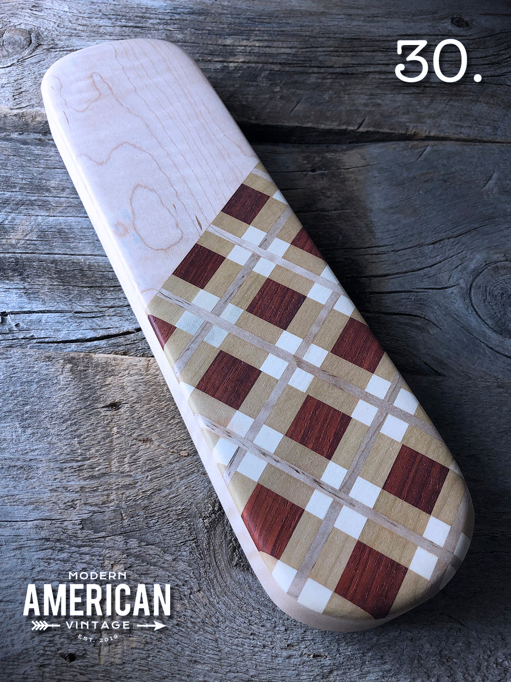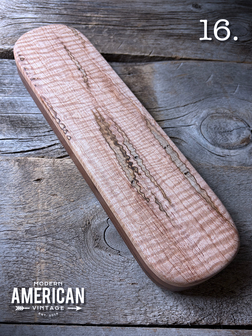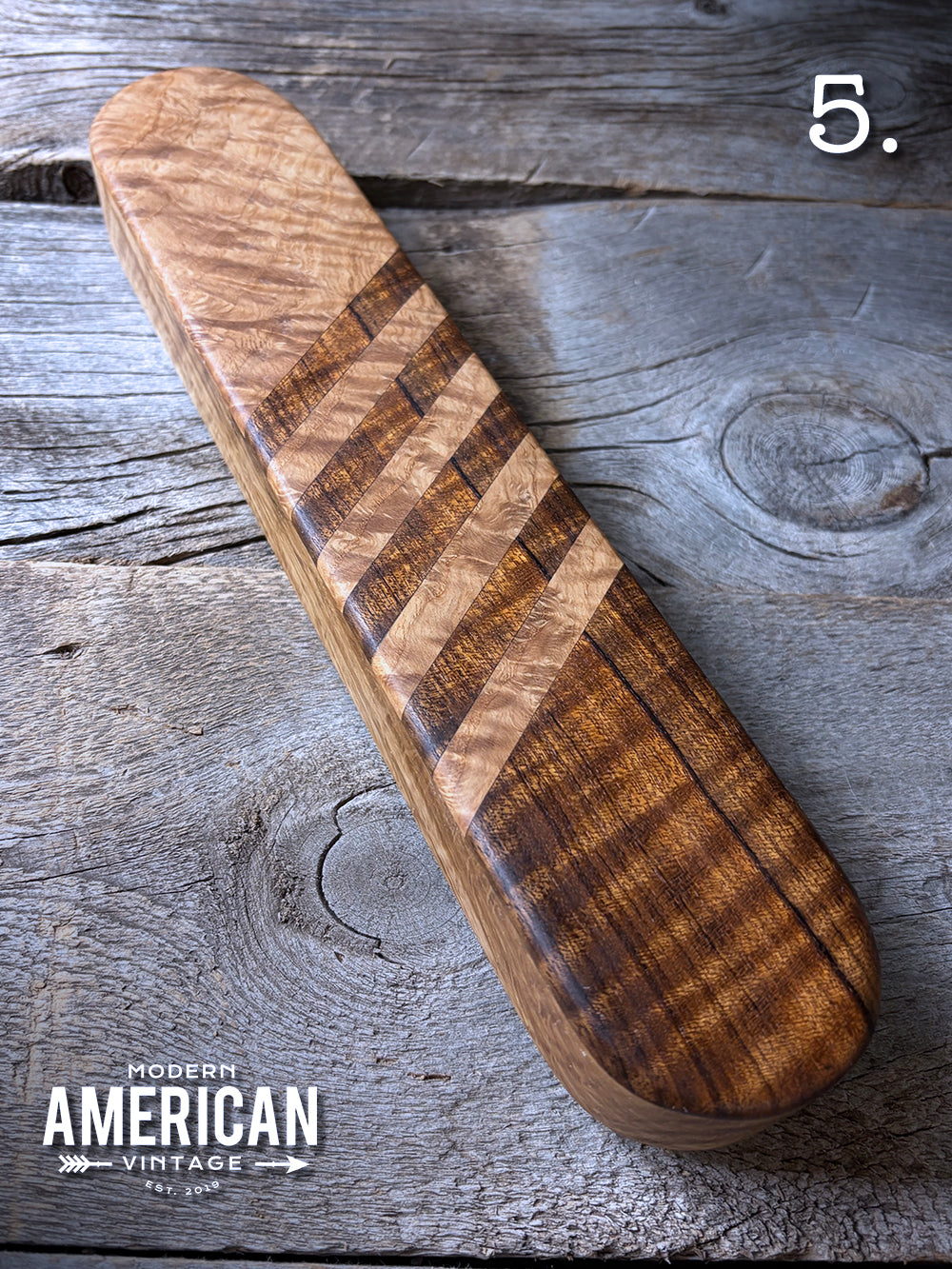 - Padauk, Poplar and Curly Maple top on Curly Maple base - 13x3.5"