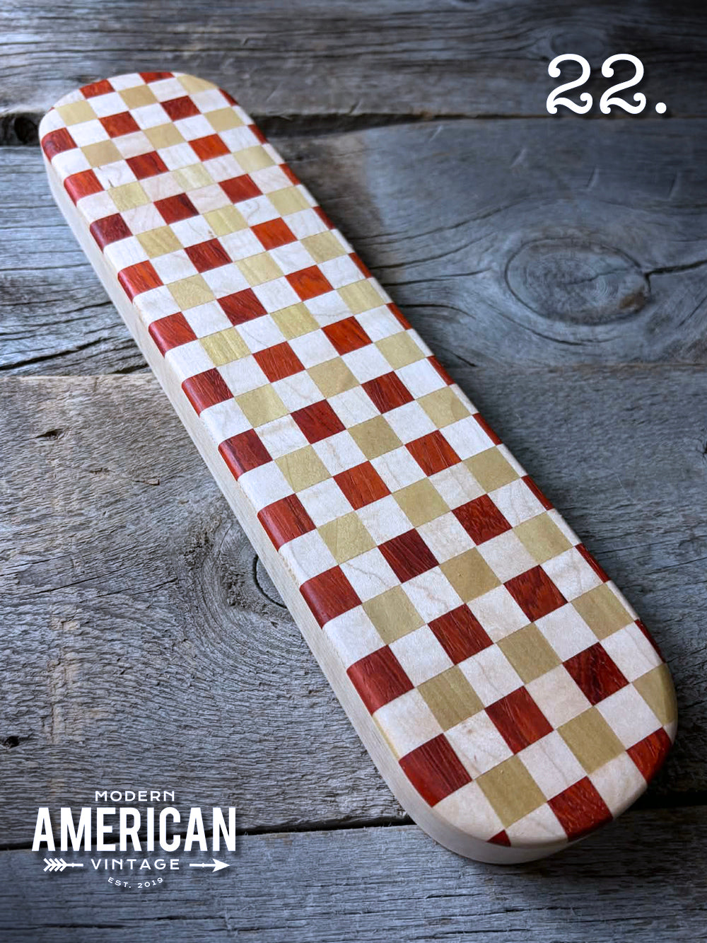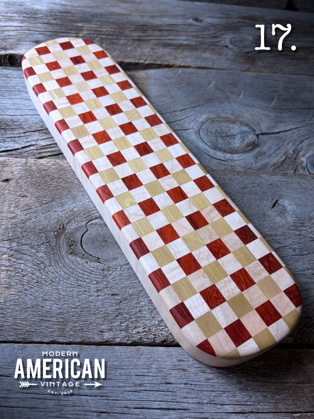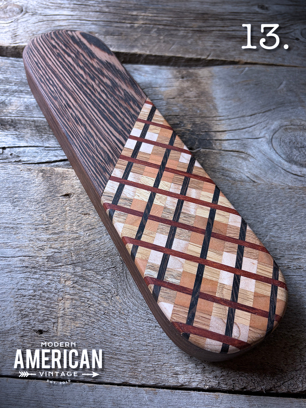 - Padauk, Poplar and Curly Maple top on Curly Maple base - 13x3.5"