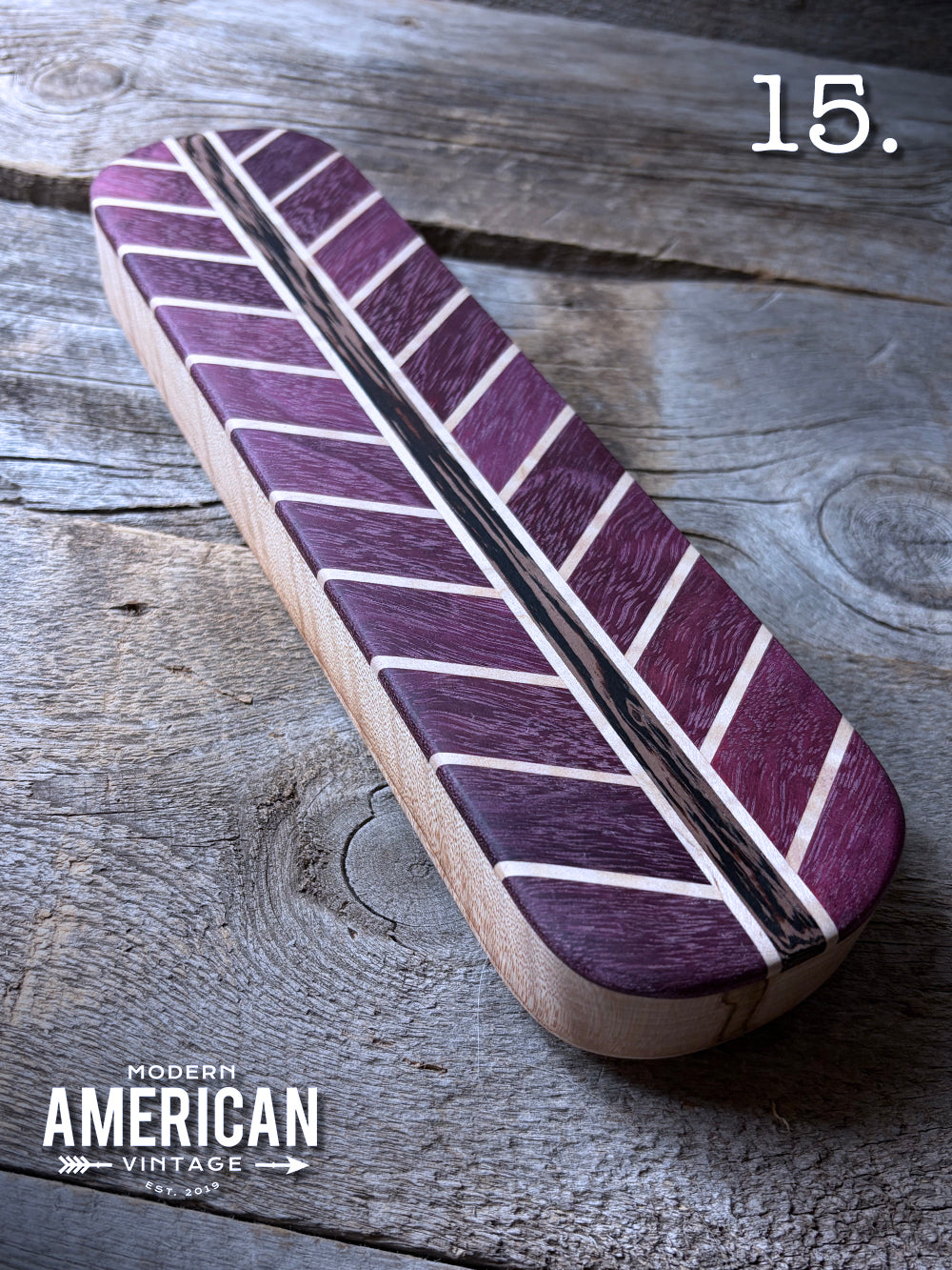 - Purpleheart, Wenge and Curly Maple top on Curly Maple base - 12.5x3"