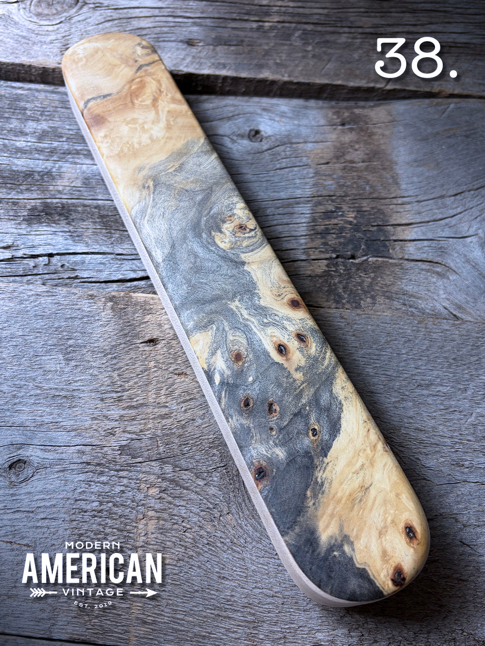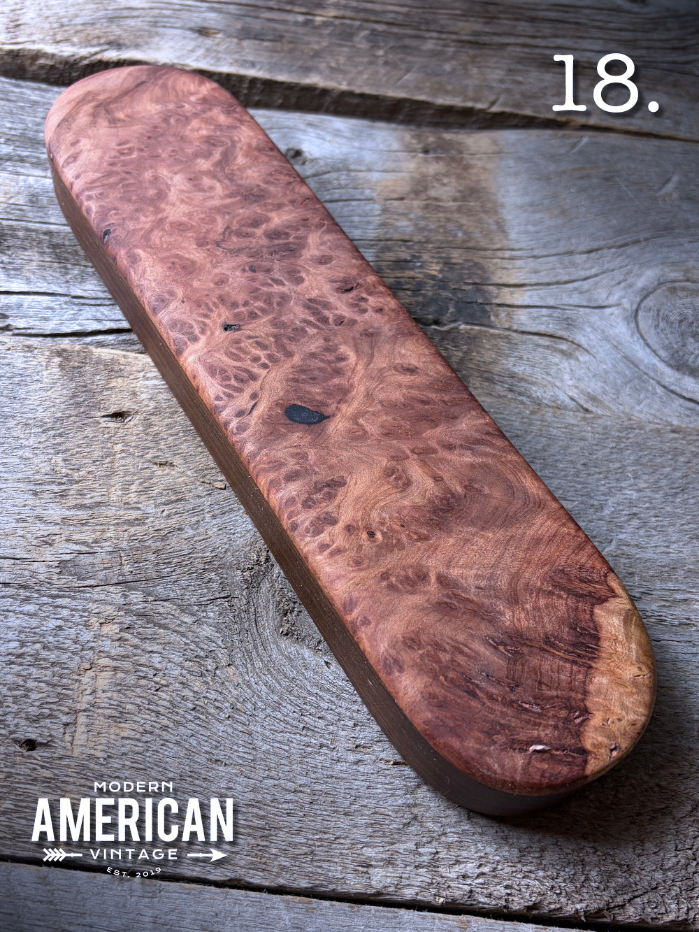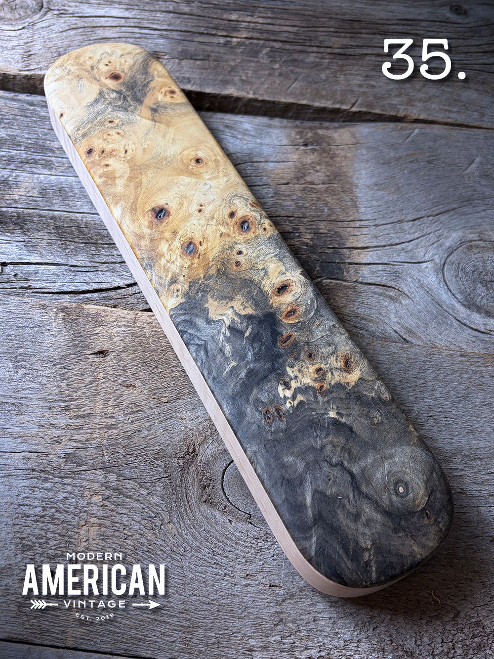 - Curly Maple, Elm Burl and African Blackwood top on Curly Maple bottom - 12x3"