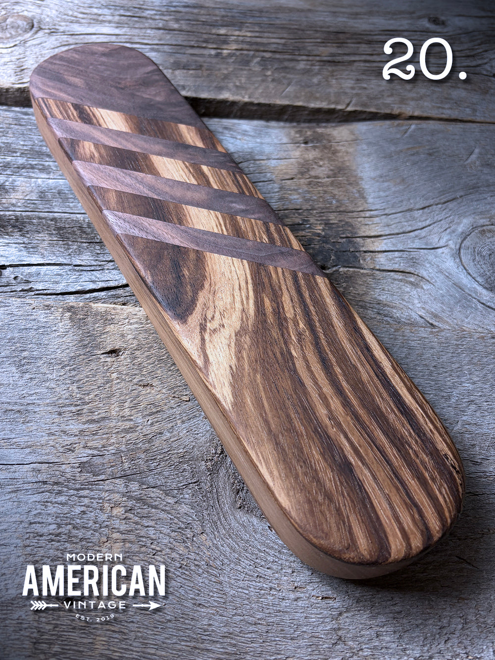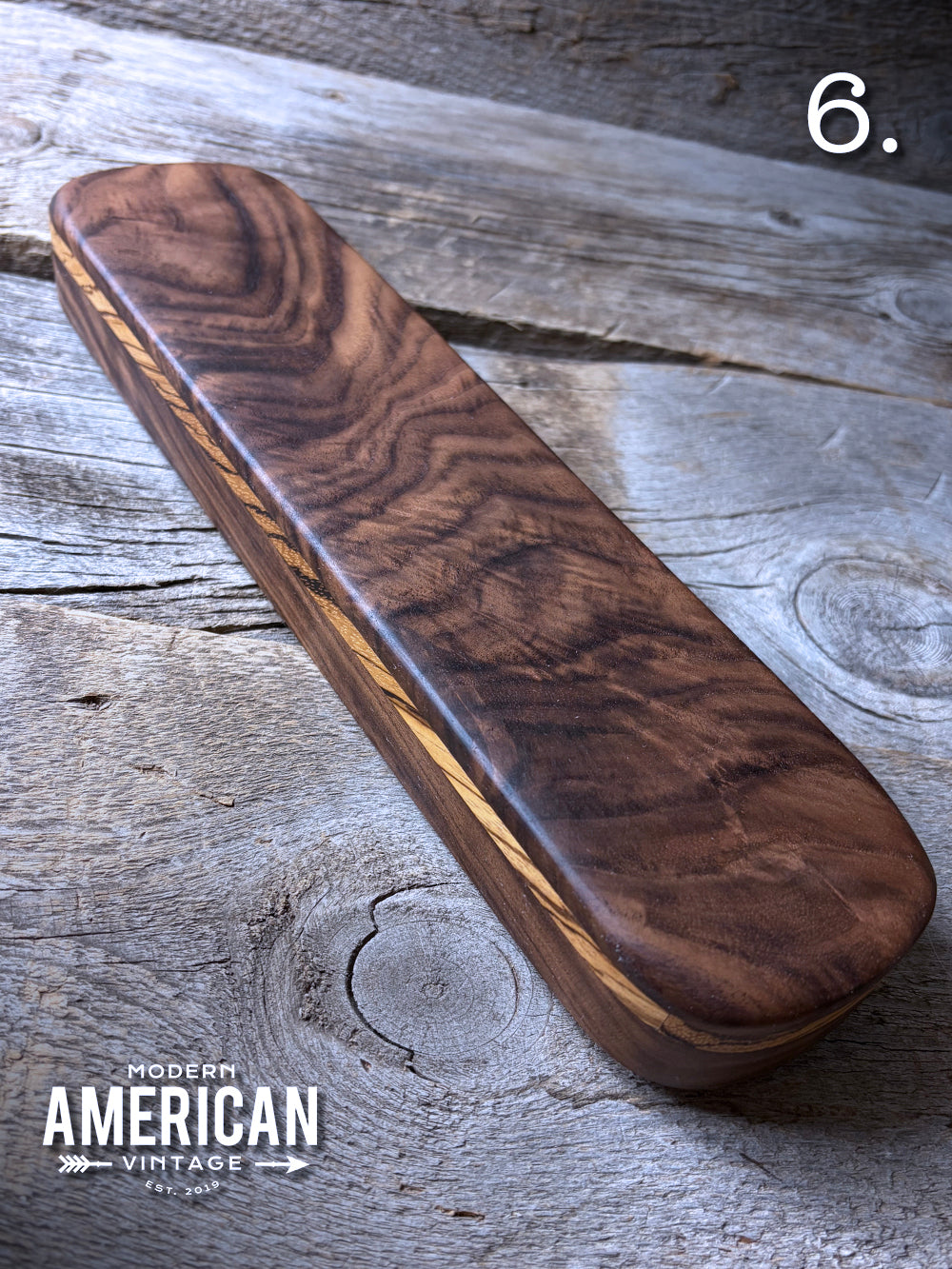 - Appalachian Walnut top, band of Zebrawood on Walnut base - 11.5x2.75x1"