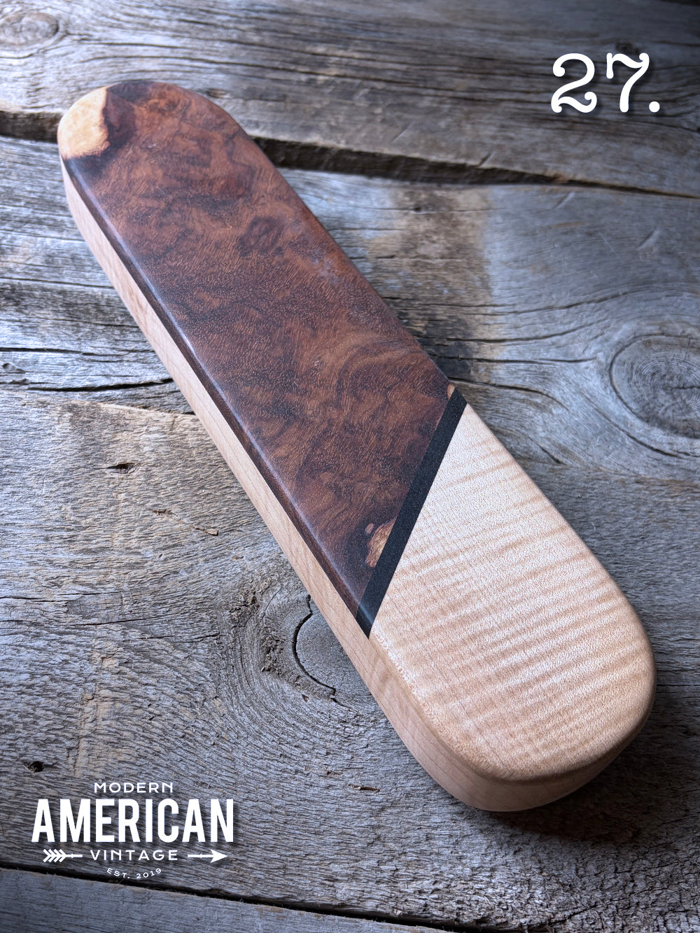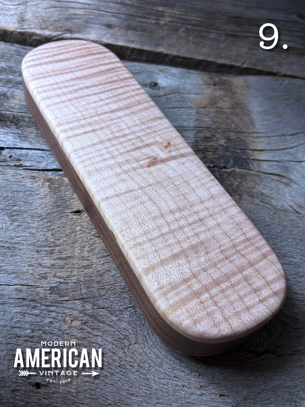 - Quilted Maple top on Walnut base - 9.5x3"