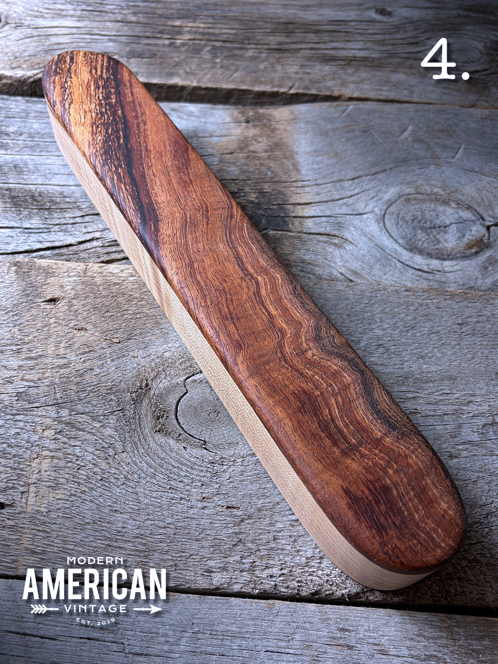 - Padauk, Poplar and Curly Maple top on Curly Maple base - 12x3"